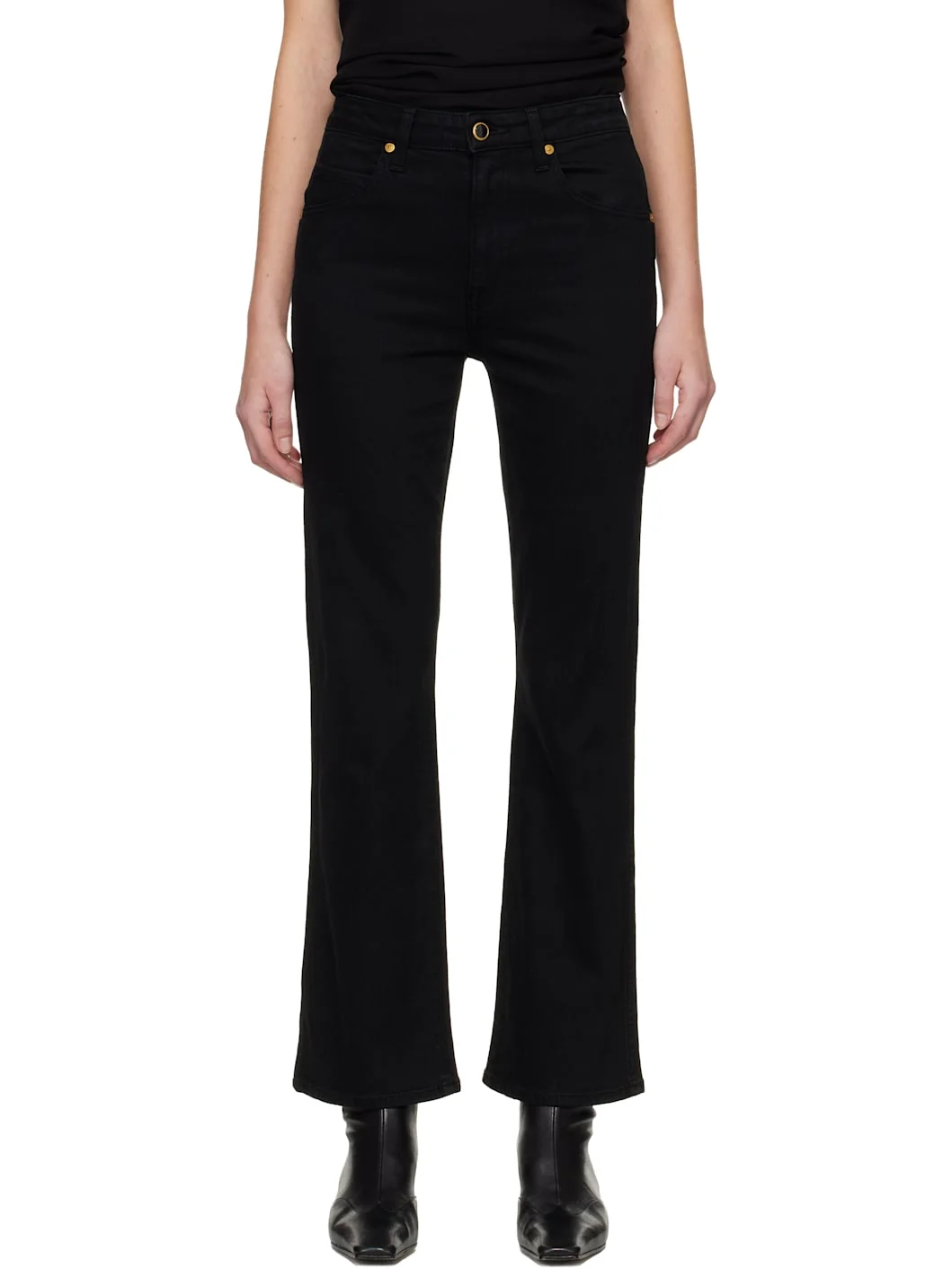 Hand-finished stretch denim jeans. · Flared · High-rise · Belt loops · Five-pocket styling · Zip fly · Cropped leg Supplier color: Carlyle 98% cotton, 2% elastane. Made in United States 261914F069000