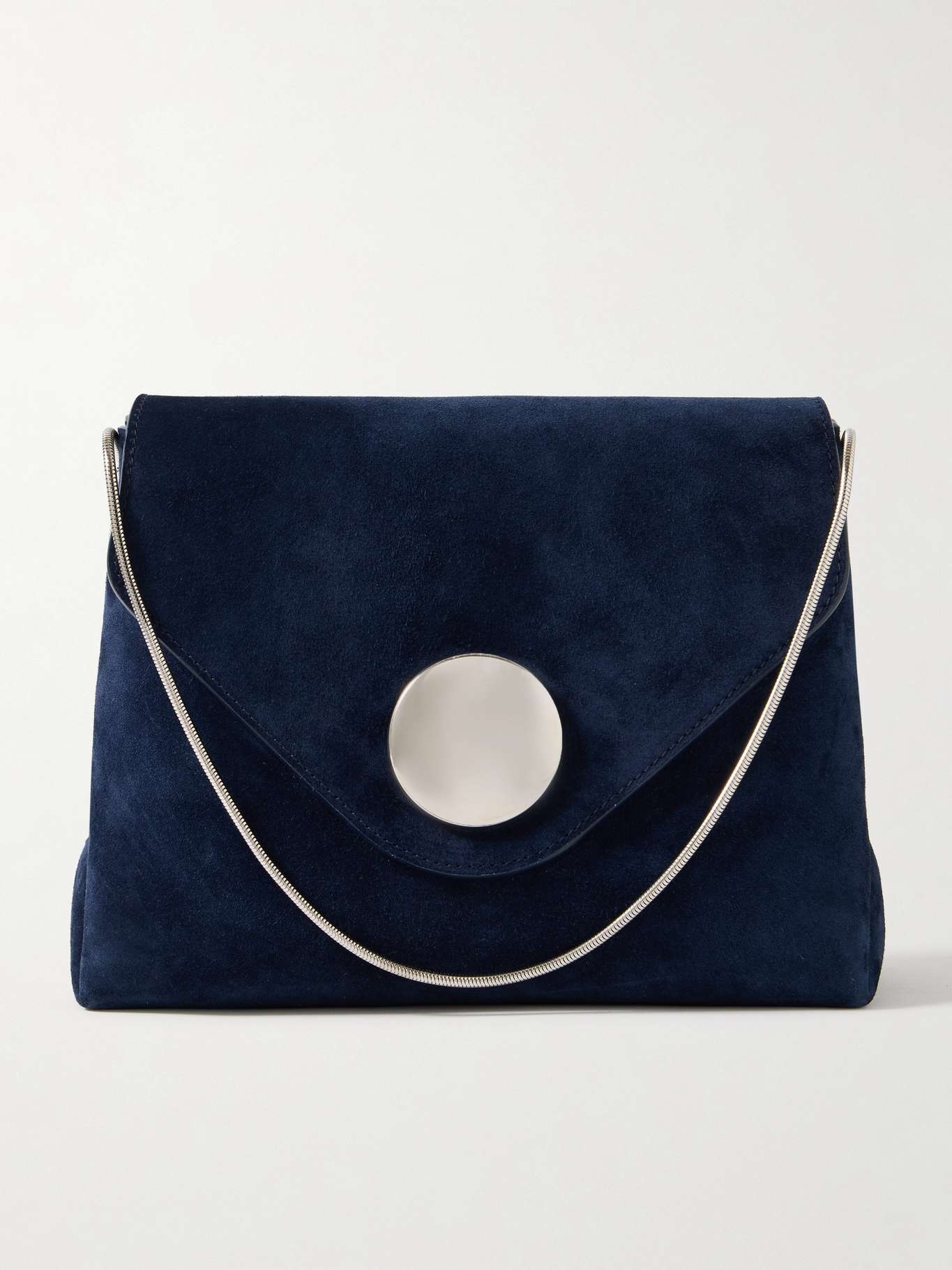 EDITORS'NOTES KHAITE's 'Bobbi' bag comes in a variety of unique colors and finishes, ensuring there's one for every occasion and outfit. This version has been made in Italy from supple suede and offers space for essentials like your phone, keys, cardholder and compact inside. SIZE & FIT This item’s measurements are: - Handle Length: 24cm / 9.4in - Height: 15cm / 5.9in - Width: 20cm / 7.9in - Depth: 9cm / 3.5in DETAILS & CARE - Midnight-blue suede (Goat) - Shoulder strap - Leather lining - Magnetic-fastening front flap