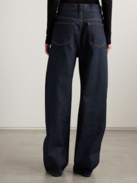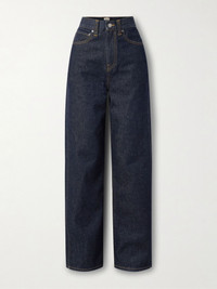 KHAITE's 'Bonnie' jeans have a relaxed fit that calls to mind vintage styles. They're designed to sit low on your waist and have classic orange topstitching. The inky 'Benson' wash works especially well with jewel tones and dark neutrals. Size & Fit - Fits true to size, take your normal size - Low-rise, cut for a relaxed fit - Mid-weight, non-stretchy denim - Size 26 jeans have an inside leg of 32"/ 81cm - Model is 180cm/ 5’11” and is wearing a size 26 Details & Care - Dark-blue denim - Button and concealed zip fastening at front - 100% cotton - Dry clean - Designer wash: Benson