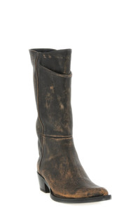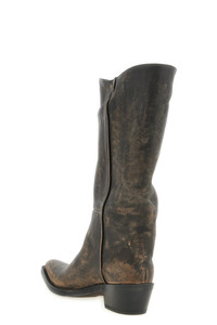 cod. F1105944482 'Clive' boots in vegetable-tanned calf leather and brushed by hand to obtain a rich vintage-effect patina, western model, tapered toe, deliberately inclined leg, stitched welt and laminated leather heel. Color: Brown Size & Fit: EU WOMAN - 3.5 cm Composition: 100% calfskin leather Made in: Italy PROMO CODE NOT APPLICABLE