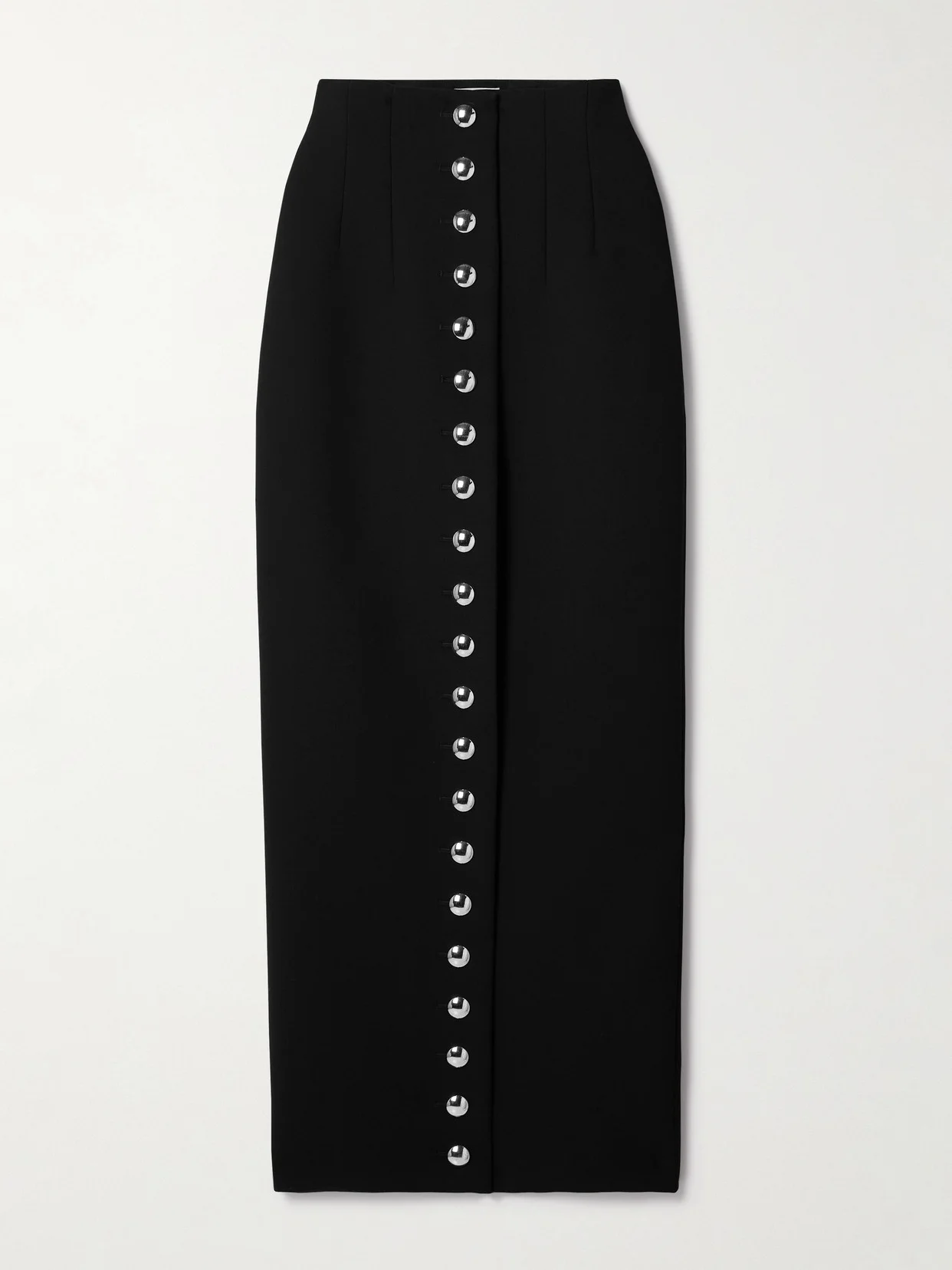 KHAITE's 'Brynlee' skirt is tailored from double-faced cady that offers a lightly smoothing and sculpting effect. It has shaping darts on the waist and fastens with a row of gleaming silver-tone buttons.