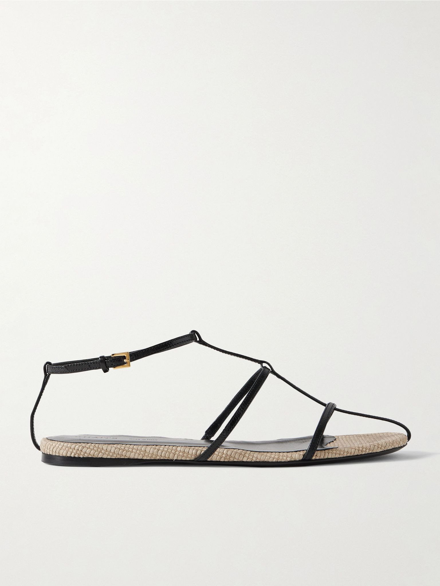 KHAITE's sandals are named for their simple caged silhouette. They're made from strips of slim leather and set on slight heels. Wear yours with dresses and jeans alike. Size & Fit - Fits true to size, take your normal size - Italian sizing Details & Care - Slight heel - Black leather (Calf) - Buckle-fastening ankle strap