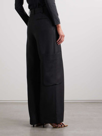 EDITORS'NOTES A refined take on classic cargo styles, KHAITE's 'Caiton’ pants are designed with wide legs featuring sizable patch pockets. They're made from a soft grain de poudre and have a mid-rise waist complete with belt loops. Wear yours with a collared shirt, chunky sweater or cropped jacket. SIZE & FIT - Fits true to size, however those who are between sizes should take the smaller size - Mid-rise, cut for a wide-leg fit - Mid-weight, slightly stretchy fabric - US sizing DETAILS & CARE - Black grain de poudre - Concealed hook, button and zip fastening at front - 75% viscose, 25% polyamide - Dry clean