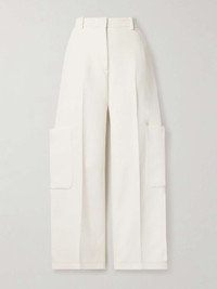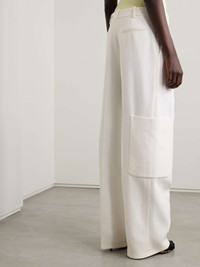 EDITORS'NOTES A refined take on classic cargo styles, KHAITE's 'Caiton’ pants are designed with wide legs featuring sizable patch pockets. They're made from a soft grain de poudre and have a mid-rise waist complete with belt loops. Wear yours with with a collared shirt, chunky sweater or cropped jacket. SIZE & FIT - Fits true to size, however those who are between sizes should take the smaller size - Mid-rise, cut for a wide-leg fit - Mid-weight, slightly stretchy fabric - Model is 177cm/ 5'10" and is wearing a US 2 DETAILS & CARE - Off-white grain de poudre - Concealed hook, button and zip fastening at front - 75% viscose, 25% polyamide - Designer color: Chalk