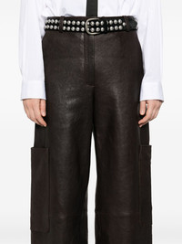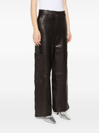 Caiton trousers Highlights - Chocolate brown - Lambskin - Belt loops - Two side inset pockets - Two side patch pockets - Two rear jetted pockets - Concealed front button, hook and zip fastening Imported Composition Lining: Cupro 100% Outer: Lambskin 100% SIZE & FIT Model measurements Height 5 ft 10 in(1.77 m) Bust/Chest 33.85 in(86 cm) Hips 37 in(94 cm) Waist 26.37 in(67 cm) FittingInformation Designed with a wide-leg cut, these trousers allow for a close fit at the waist and offer a loose and roomy fit over the leg Soft leather has a supple and smooth construction offering some flexibility This piece fits true to size – take your usual size