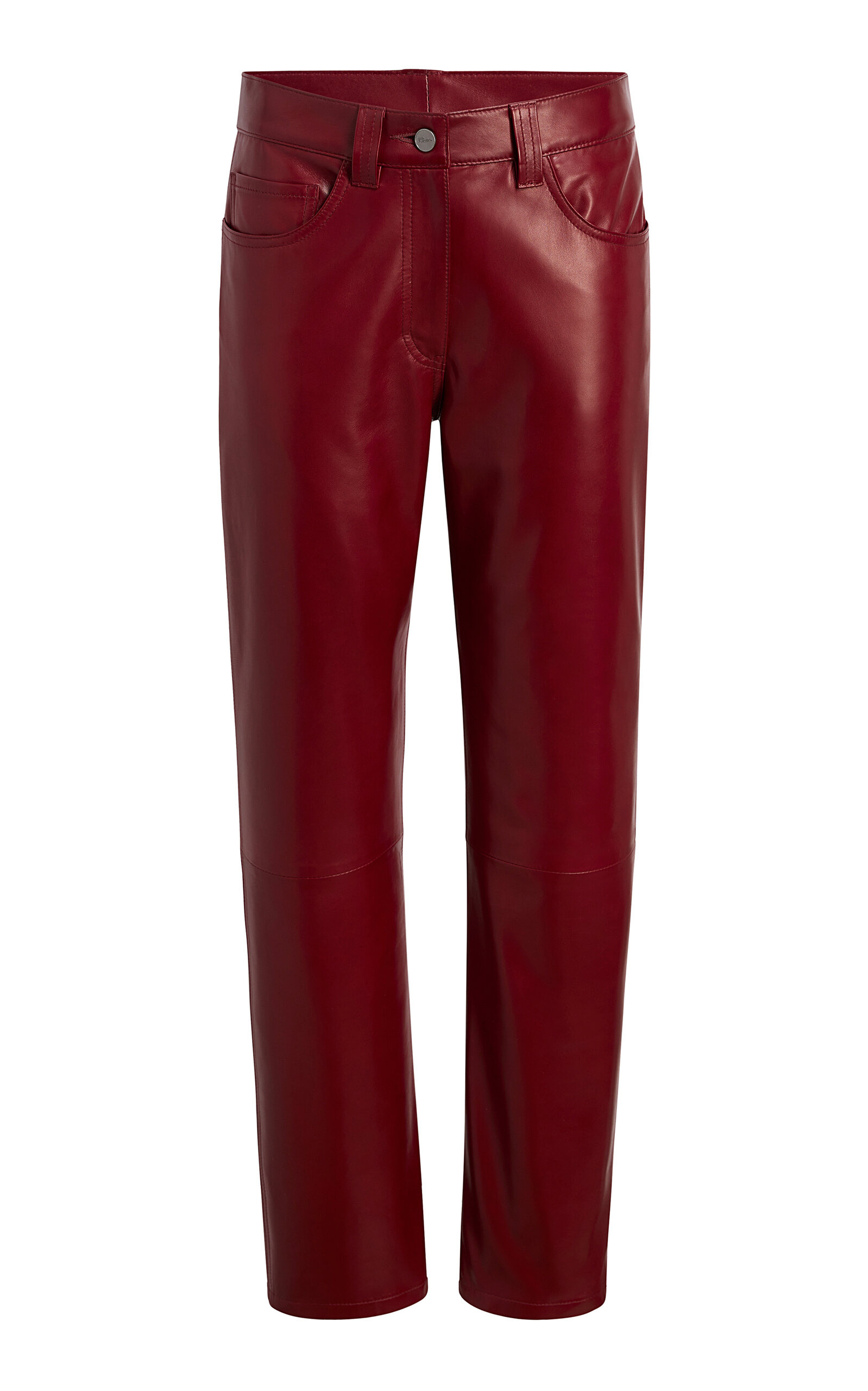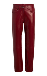 PRODUCT DETAILS - Slim fit, mid rise, belt loops, pockets, straight leg - Zipper and button fastening - Composition: 100% Lamb Leather - Color: Garnet - Dry clean - Fall '25