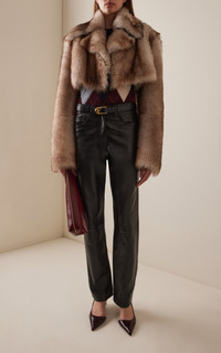PRODUCT DETAILS - Slim fit, mid rise, belt loops, pockets, straight leg - Zipper and button fastening - Composition: 100% Lamb Leather - Color: Garnet - Dry clean - Fall '25