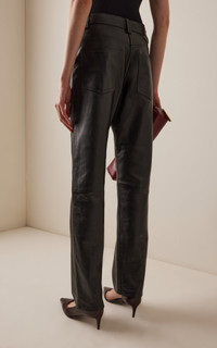 Callum Mid-Rise Leather Straight-Leg Pants black