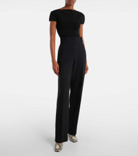 Product Details - Material: 53% polyester, 43% virgin wool, 4% elastane - Care instructions: dry clean - Made in Italy - Designer color name: Black - Full length - Item number: P00992520 Size & Fit - Fits large to size - we recommend trying one size smaller - Non-stretchy fabric - Straight leg - High-waisted - The model seen in the picture is 178cm-5'10" and wearing a size US 2