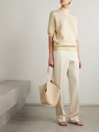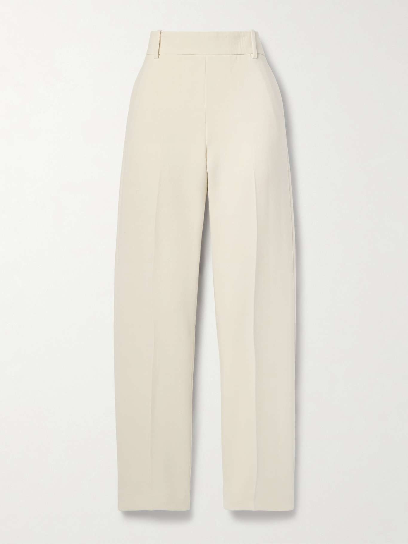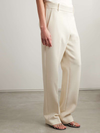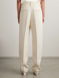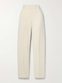 Few designers champion sophisticated minimalism quite like KHAITE. These 'Cambie' pants are tailored from cream twill and have a mid-rise waist and straight legs traced with elongating pressed creases. They'll look especially chic with a tonal top and sandals. Size & Fit - Fits true to size, take your normal size - Mid-rise, designed for a straight-leg fit - Slightly long in length - Mid-weight, non-stretchy fabric - Model is 175cm/ 5'9" and is wearing a US 2 Details & Care - Cream twill - Concealed hook and zip fastening at side - 53% polyester, 43% virgin wool, 4% elastane