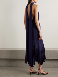 Candita scarf-detailed pleated silk-georgette maxi dress Navy