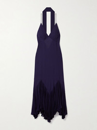 KHAITE's 'Candita' dress is the picture of elegance. Made from silk-georgette, it closely skims your frame before flaring out in dramatic pleats at the maxi hem. Knot the scarf loosely around your neck so it drapes down the back. Size & Fit - Fits true to size, take your normal size - Designed for a slightly loose fit - Lightweight, non-stretchy fabric - Model is 180cm/ 5'11" and is wearing a US 2 Model measurements: - Bust: 79cm/ 31” - Waist: 61cm/ 24” - Hip: 89cm/ 35” Details & Care - Dark-purple silk-georgette - Button-fastening keyhole at back - 100% silk - Designer color: Amethyst