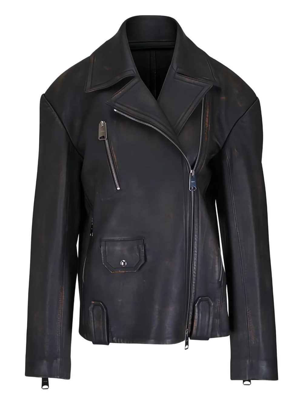 Catalina zip calf leather jacket Highlights - Black - Zip detail - Chest pocket - Point collar - Straight hem Made in Italy Composition Lamb Skin 100% Washing instructions Read Manufacturer Guidelines
