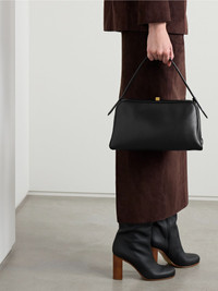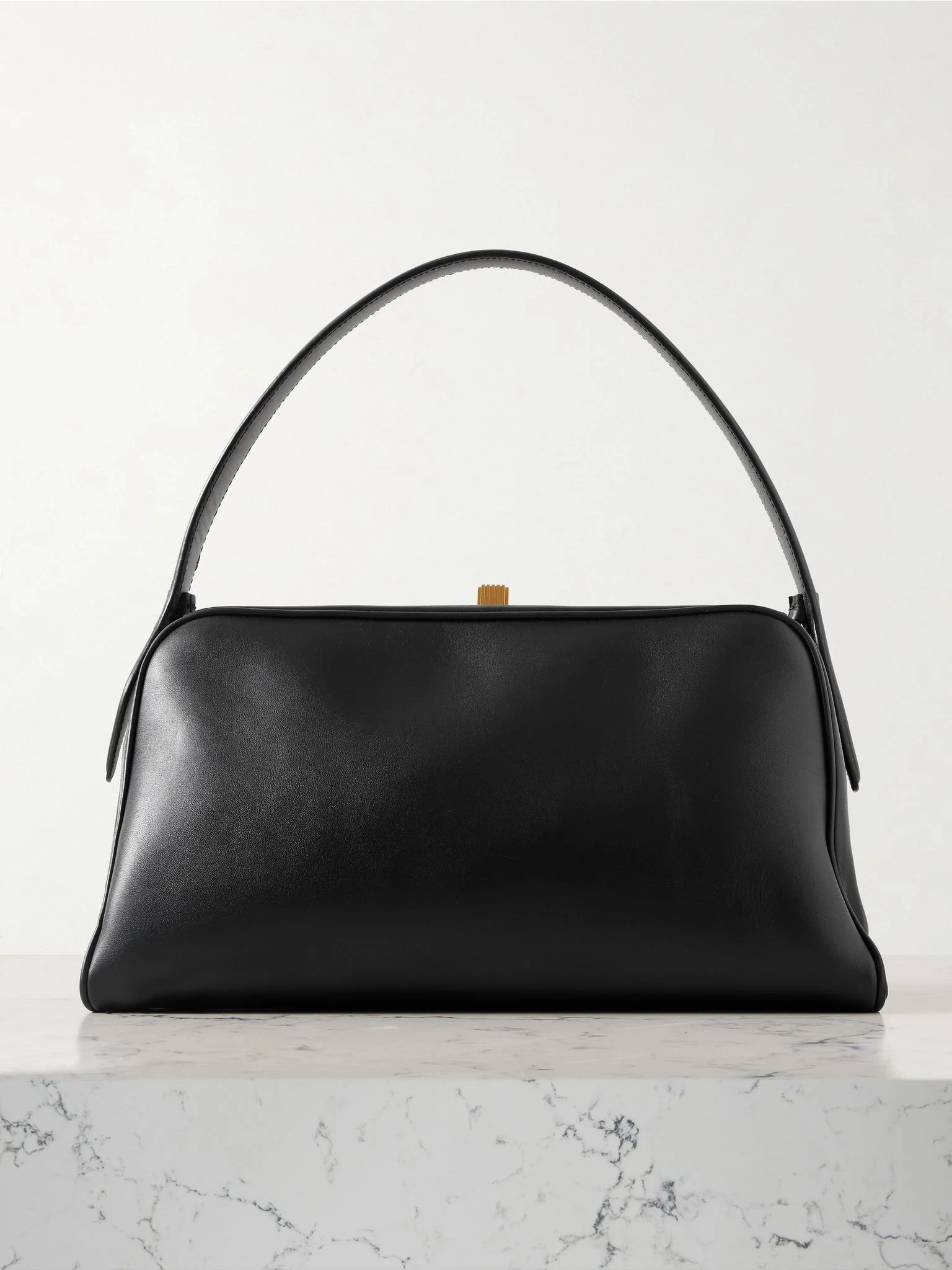 KHAITE's tote is such a strong reflection of the brand's chic, timeless aesthetic, that founder 'Cate' Holstein even put her own name on it. Reminiscent of vintage styles, this version is made from smooth leather in a boxy shape with a polished gold-tone frame and matching clasp. The suede-lined interior has plenty of room for your phone, cardholder and compact. Details & Care - Black leather (Calf) - Top handle - Internal card slot - Suede lining - Clasp fastening at top