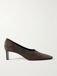 KHAITE's 'Cecilia' pumps are designed withe timeless minimalism and quality craftsmanship at the forefront. Made from supple suede, this version has narrow squared toes and modern high vamps. The 50mm block heels enhance the architectural feel. Size & Fit - Fits true to size, take your normal size - Italian sizing Details & Care - Heel measures approximately 50mm/ 2 inches - Brown suede (Calf) - Slip on