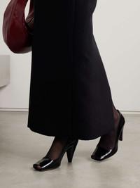 KHAITE is an expert when it comes to balancing classic silhouettes with contemporary details. These 'Cedar' pumps are made from black glossed-leather and set on angular 90mm heels. The square peep-toe is both subtle and elegant. Size & Fit - Fits true to size, take your normal size - Italian sizing Details & Care - Heel measures approximately 90mm/ 3.5 inches - Black glossed-leather (Calf) - Slip on