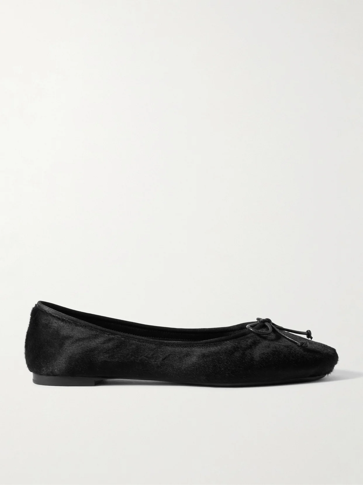 KHAITE's 'Charlotte' ballet flats are made from fuzzy calf hair, subtly redefining the classic design. Simple and elegant, they're outlined with tonal trims and centered with bows.
