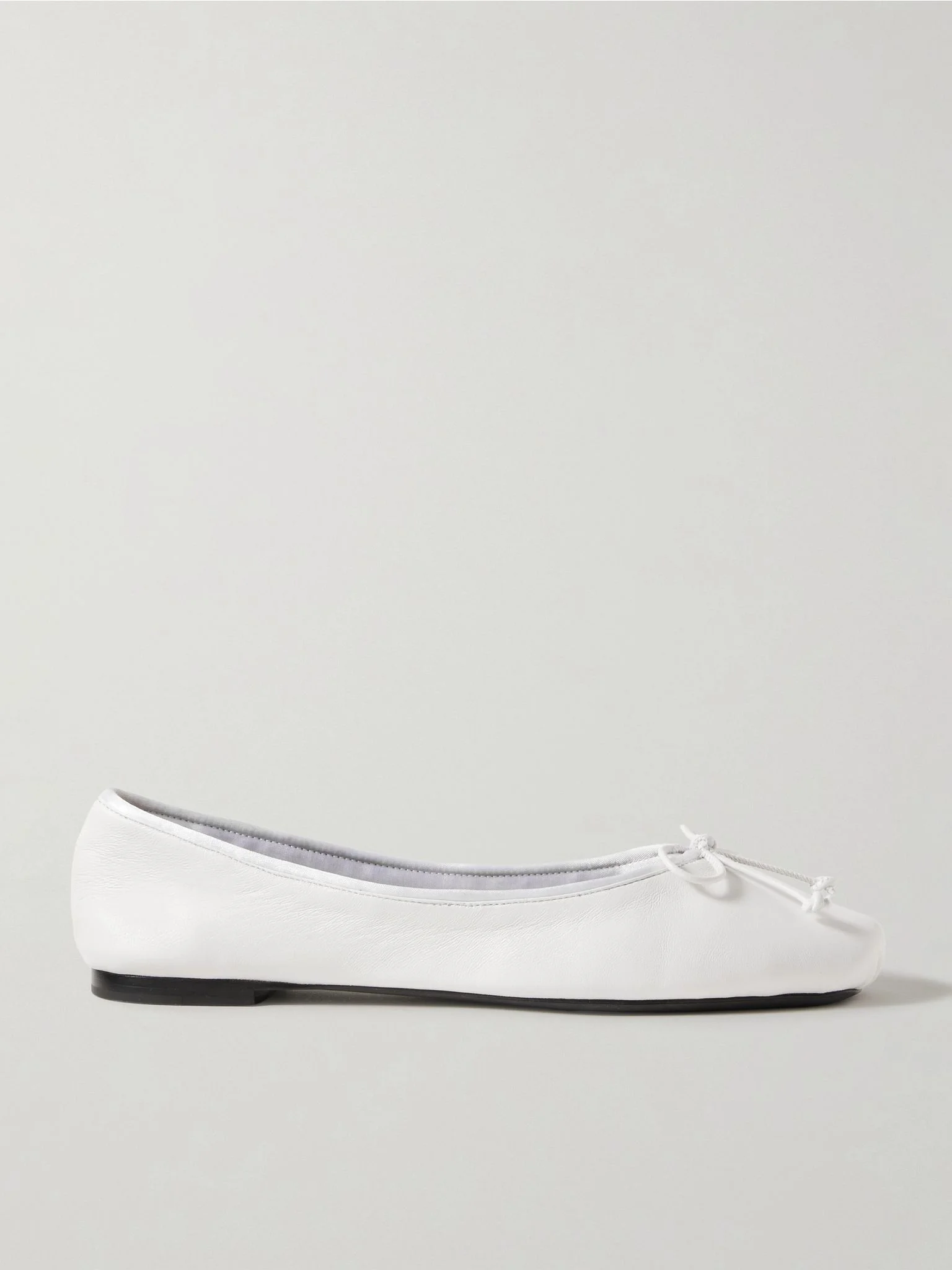 KHAITE's 'Charlotte' ballet flats are crafted from smooth leather, making them a timeless classic. Simple and elegant, they're outlined with tonal trims and centered with bows. Details & Care - Slight heel - White leather (Lamb) - Slips on