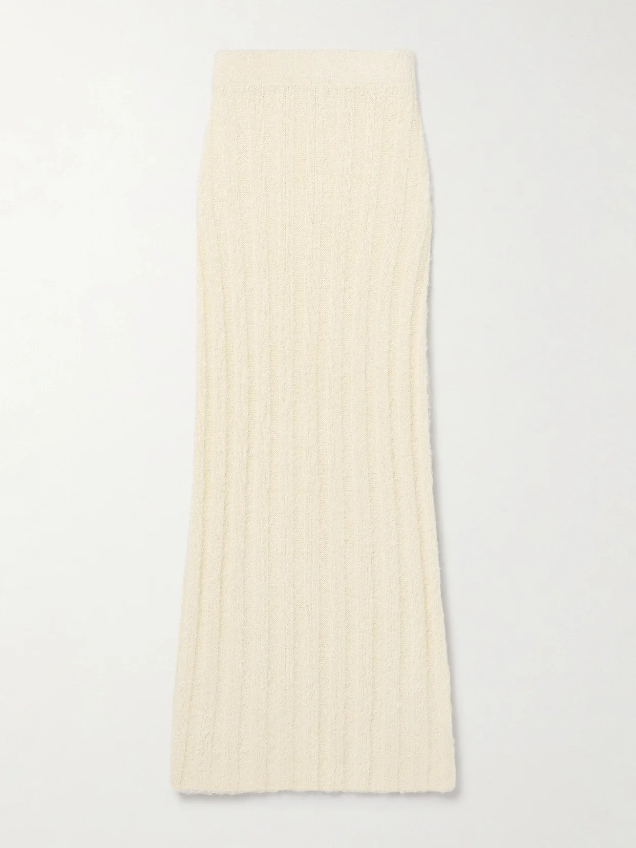 Claire Ribbed Brushed Silk And Cashmere-blend Midi Skirt
