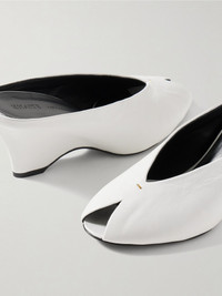 KHAITE's 'Cloak' mules are crafted from leather with peep-toes and angular heels that speak to the designer's architectural influences. The low-cut vamps create an elongating effect. Size & Fit - Fits true to size, take your normal size - Italian sizing Details & Care - Heel measures approximately 75mm/ 3 inches - White leather (Lamb) - Slip on
