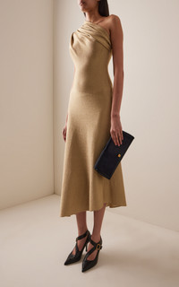 Coast One-Shoulder Metallic-Knit Midi Dress gold