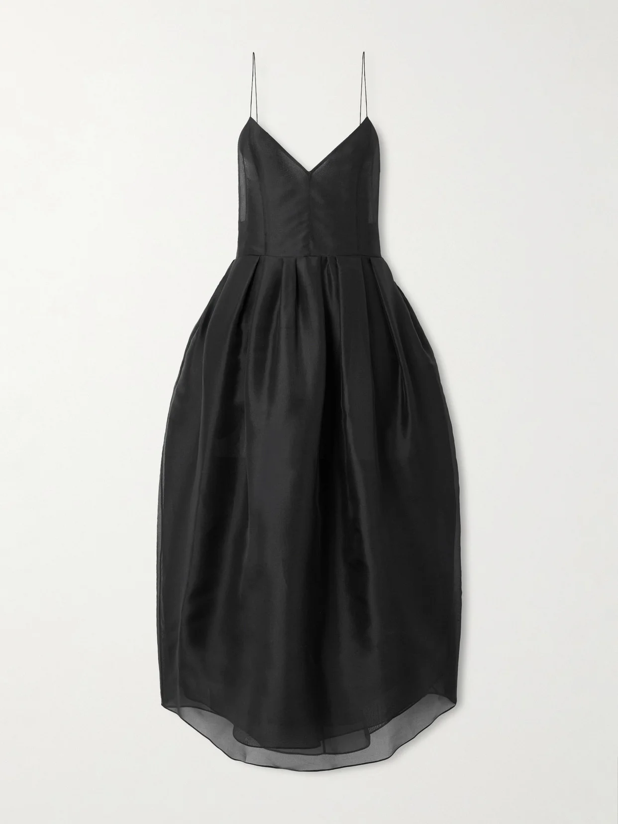 Make a simple statement with Khaite's 'Colette' dress. Cut from wispy silk-organza, it's suspended from pin-thin straps and fits close through the bodice before flaring out to a voluminous pleated skirt. The low-cut back lends a hint of allure.