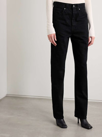 EDITORS'NOTES Straight-leg jeans are probably the most timeless of all shapes. The ideal foundation for so many outfits, KHAITE's 'Corben' pair is made from non-stretch denim and designed to be worn a bit looser and lower on the hips. Style them with a tucked-in top to best illustrate the cut. SIZE & FIT - Fits true to size, take your normal size - Intended to be worn loose and low on the hips - Mid-weight, non-stretchy fabric - Model is 180cm/ 5'11" and is wearing a size 26 DETAILS & CARE - Black denim - Partially concealed button fastenings along front - 100% cotton - Designer wash: Bartlett