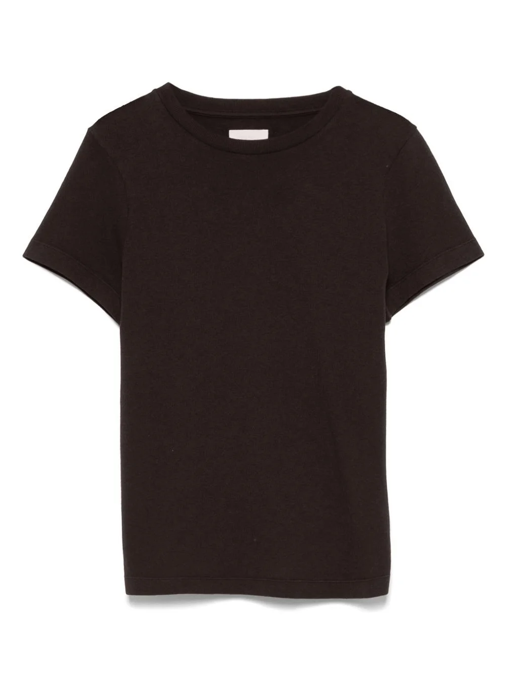 cotton T-shirt Highlights - Brown - Crew neck - Short sleeves - Straight hem Imported Composition Cotton 100% SIZE & FIT Model measurements Height 5 ft 9 in(1.75 m) Bust/Chest 34.64 in(88 cm) Hips 36.61 in(93 cm) Waist 26.37 in(67 cm) FittingInformation Designed for a slim fit that sits just away from the body offering a close yet comfortable fit Made from a midweight non-stretch fabric, this piece offers minimal elasticity when worn