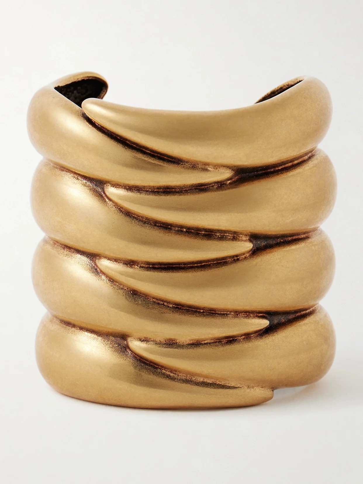 KHAITE's cuff is intricately carved to resemble a cyclone - the cool design creates the illusion of matching stacked styles. It's been made in Italy from gold-plated brass and has a vintage-inspired, antiqued finish. Our edit includes a gold-plated version, too.