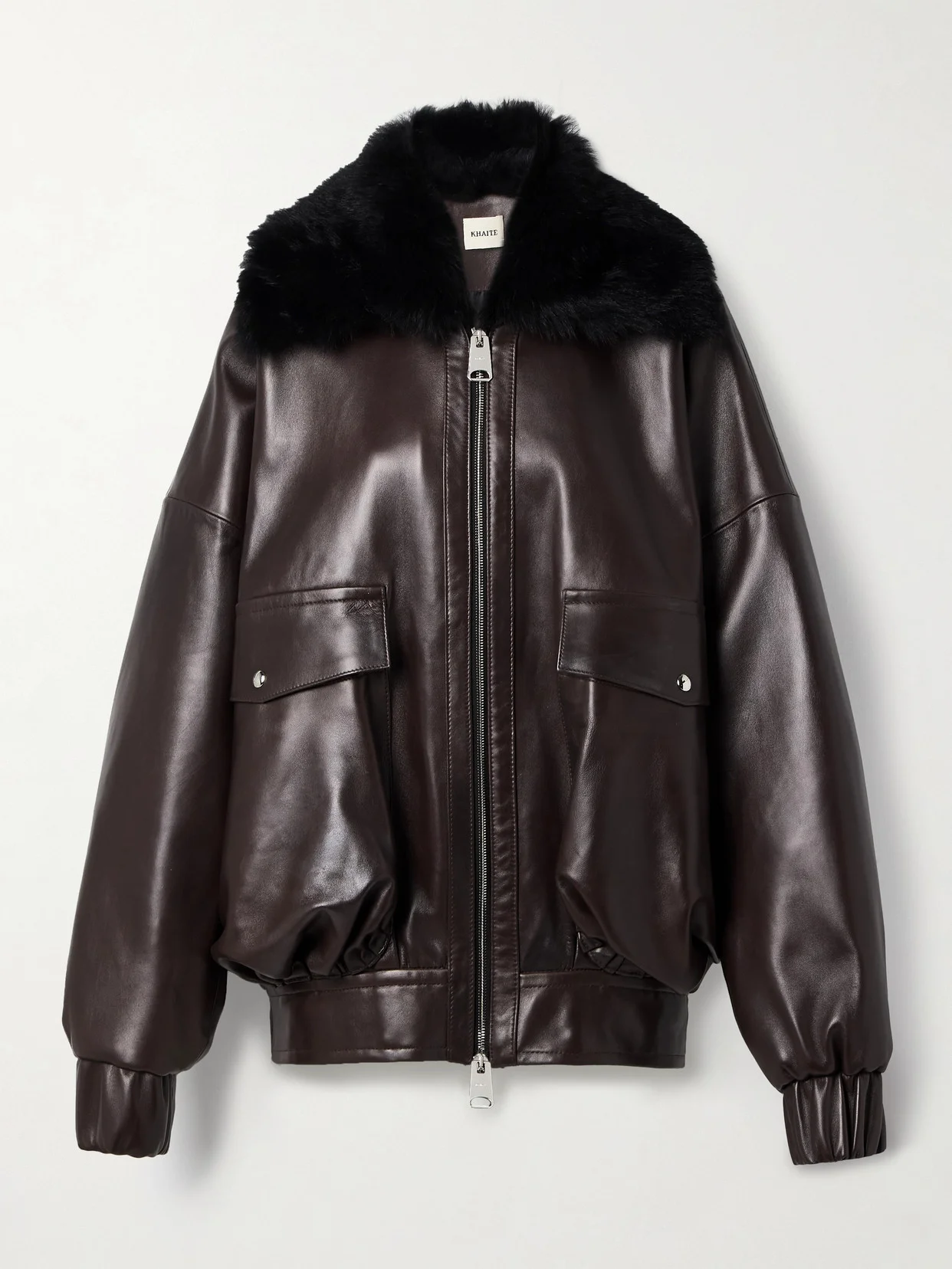 KHAITE's 'Daemon' jacket is equally cool and timeless. Made from supple leather, it has a fluffy shearling collar and elasticated cuffs and hem that temper the loose, oversized fit. The smooth satin lining ensures easy layering.