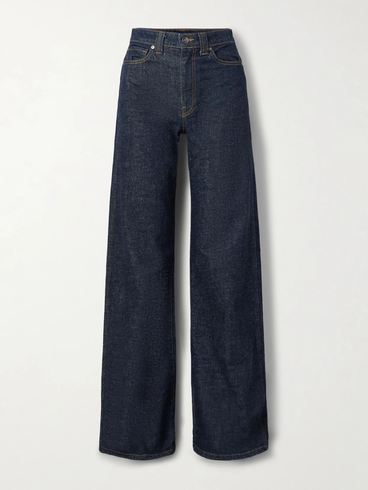 KHAITE's 'Dane' jeans have a high waist and wide legs. They're made from denim in a dark-blue 'Benson' wash and look chic styled with everything from sweaters to floaty blouses.
