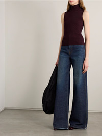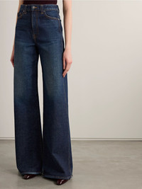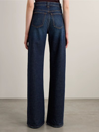 KHAITE’s ‘Dane’ jeans are designed with a high waist and wide legs, ensuring a universally flattering design and elongating effect. They're made from denim in a dark-blue 'Lansing' wash and look chic styled with everything from a sweater to a feminine blouse. Size & Fit - Fits true to size, take your normal size - High-rise, designed for a wide-leg fit - Particularly long in length - Mid-weight, non-stretchy fabric - Size 26 jeans have an inside leg of 33.5"/ 85cm - Model is 180cm/ 5’11” and is wearing a size 26 Details & Care - Dark-blue denim - Button and concealed zip fastening at front - 98% cotton, 2% polyurethane - Designer wash: Lansing