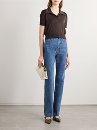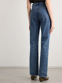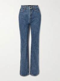 KHAITE's effortless approach is consistent with every design, including the label's denim. These 'Danielle' jeans have a high-rise waistband that makes the slim legs look even sleeker. Each pair is faded and whiskered by hand to look perfectly worn. Size & Fit - Fits true to size, take your normal size - High-rise, cut for a slim fit - Mid-weight, non-stretchy denim - Model is 180cm/ 5’11” and is wearing a size 26 Details & Care - Blue denim - Button and concealed zip fastening at front - 98% cotton, 2% polyurethane - Designer wash: Boone