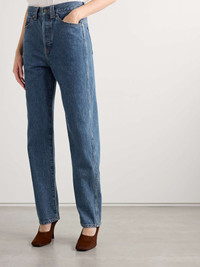 EDITORS'NOTES Straight-leg jeans are probably the most timeless of all shapes. The ideal foundation for so many outfits, KHAITE's 'Corben' pair is made from non-stretch denim and designed to be worn a bit looser and lower on the hips. Style them with a tucked-in top to best illustrate the cut. SIZE & FIT - Fits true to size, take your normal size - Intended to be worn loose and low on the hips - Mid-weight, non-stretchy denim - Model is 180cm/ 5'11" and is wearing a 26 DETAILS & CARE - Blue denim - Partially concealed button fastenings along front - 100% cotton - Designer wash: Boone