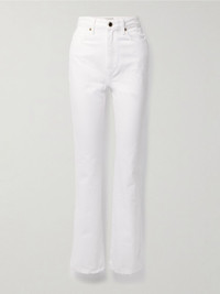 KHAITE's approach to denim is no different to that of the brand's tailoring or knitwear - it skillfully balances elegance and comfort. These 'Danielle' jeans are cut from white denim and have a high-rise. Subtle fading and a glossy enameled button provide considered finishing touches. Details & Care - White denim - Button and concealed zip fastening at front - 100% cotton