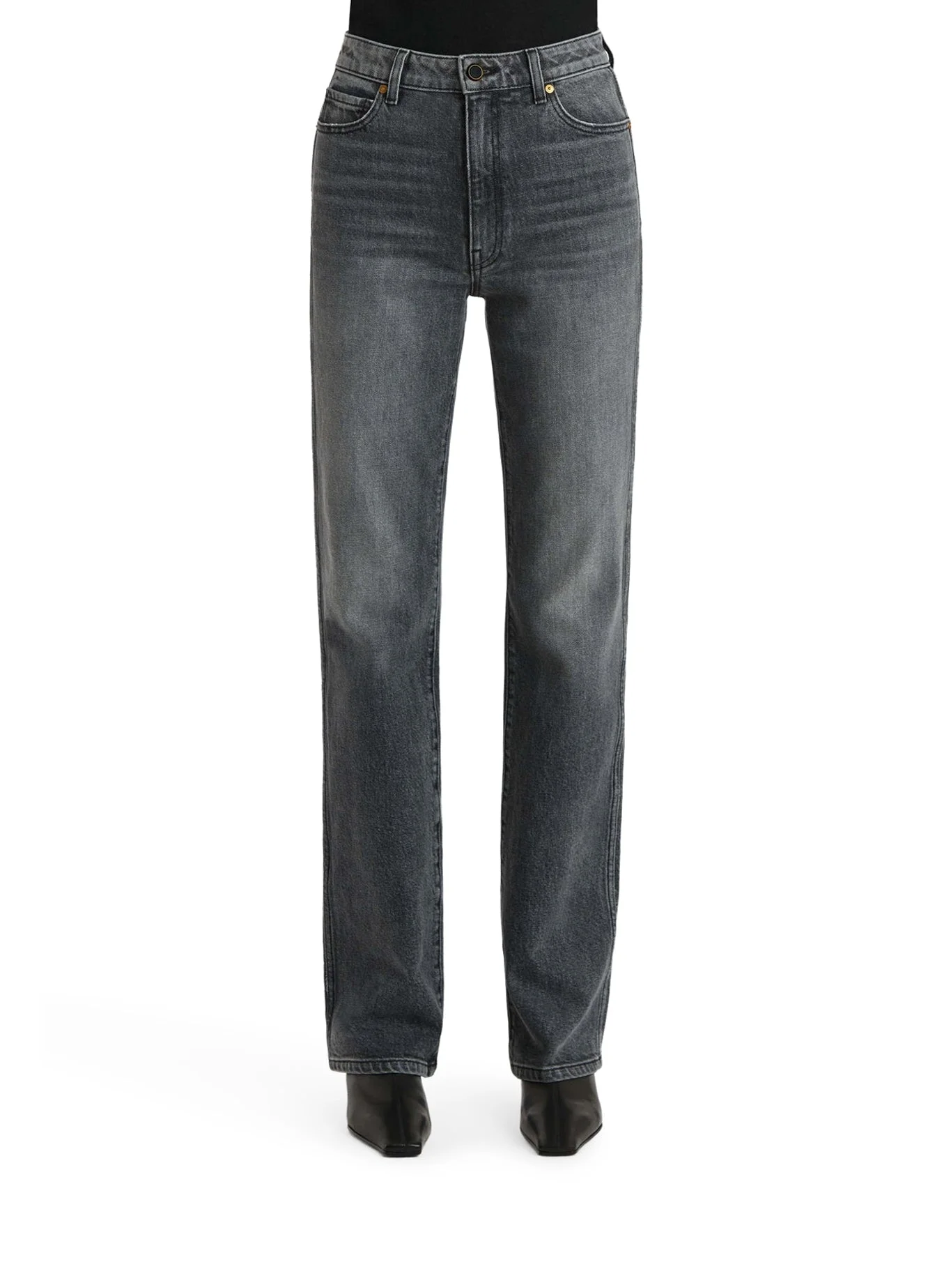 - High-waisted jeans - Stretch denim pencil silhouette - Hand-finished - Slim fit. We recommend ordering your usual size. - The model is 1.78 m tall and wears a size 26 - Color: Grey Made in Usa Composition: Cotton 99% cotton 1% elastane Color code: 031 WARWICK 1032925031