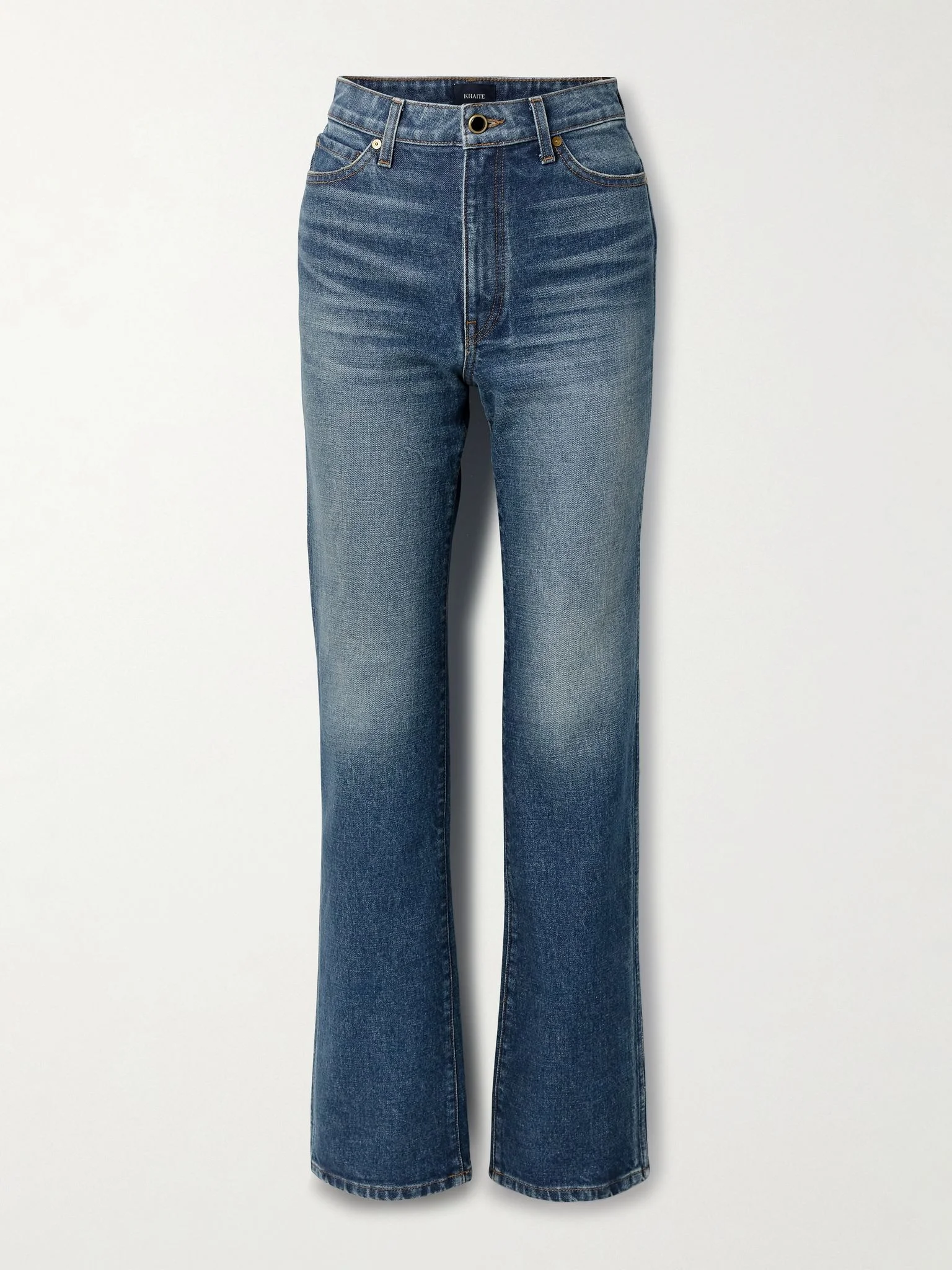 KHAITE's effortless approach is consistent with every design, including the label's denim. These 'Danielle' jeans have a high-rise waistband that makes the slim legs look even sleeker. Each pair is faded and whiskered by hand to look perfectly worn. Size & Fit - Fits true to size, take your normal size - High-rise, cut for a slim fit - Mid-weight, non-stretchy denim - Model is 180cm/ 5’11” and is wearing a size 26 Details & Care - Tonal-blue denim - Button and concealed zip fastening at front - 98% cotton, 2% polyurethane - Designer wash: Harkins