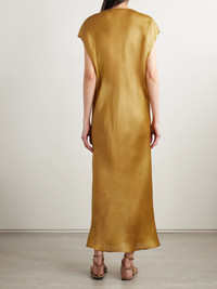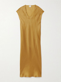 KHAITE's 'Darby' dress is cut from silk-organza in a vibrant 'Dijon' - the lustrous finish enhances the jewel tone so nicely. It has a slightly loose fit that drapes over your frame and falls to a midi length. Wear it with a pair of the label's equally simple mules or strappy sandals. Size & Fit - Fits true to size, take your normal size - Designed for a slightly loose fit - Lightweight, non-stretchy fabric - Model is 180cm/ 5'11" and is wearing a size Small Model measurements: - Bust: 79cm/ 31" - Waist: 61cm/ 24" - Hip: 89cm/ 35" Details & Care - Mustard silk-organza - Slips on - 100% silk - Designer color: Dijon