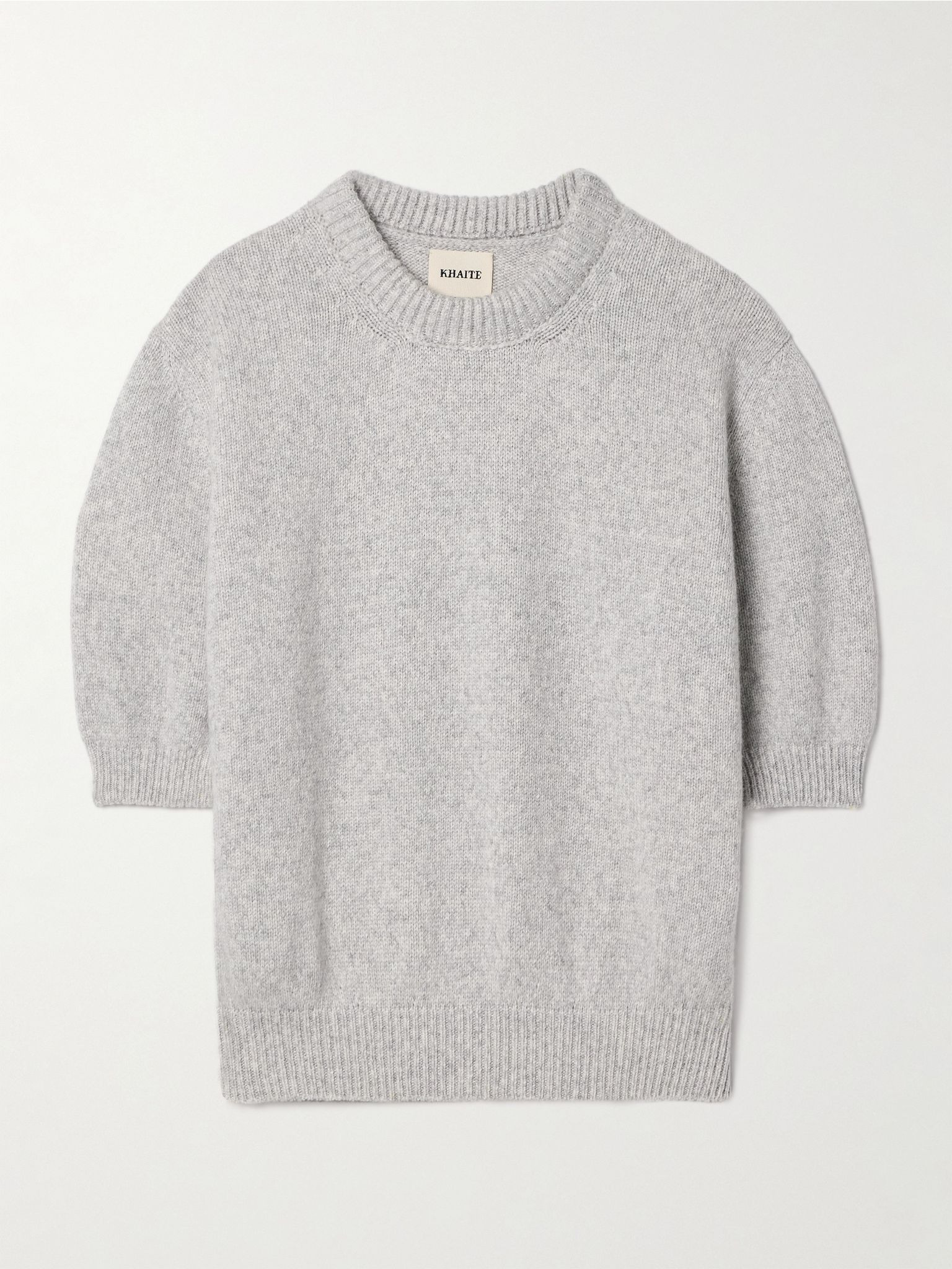 KHAITE's understated 'Davin' sweater will be the foundation of countless outfits - if you're a fan but prefer other shades, we carry it in pastel-yellow, mushroom and black, too. It's knitted from soft, plush cashmere and has subtly puffed elbow-length sleeves and ribbed trims. Style it with everything from jeans to a midi skirt or tailored pants. Details & Care - Gray melange cashmere - Slips on - 100% cashmere - Designer color: Dove