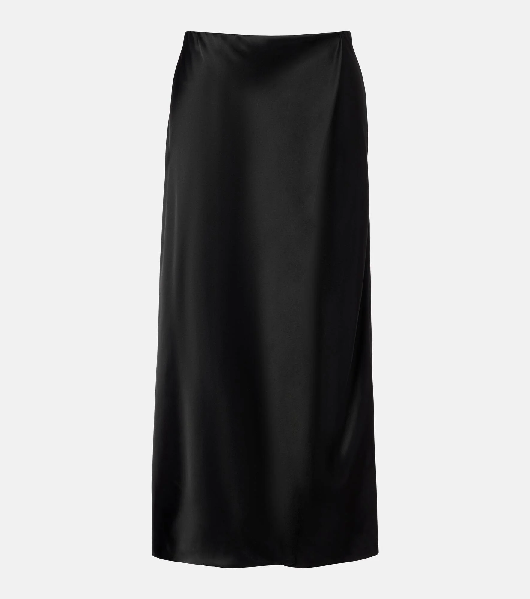 Khaite's minimalist designs exude modern sophistication and effortless elegance. Crafted from satin, the Demi midi skirt features a wrap silhouette with a side slit. Product Details - Material: 60% acrylic, 40% viscose - Care instructions: dry clean - Made in the USA - Designer color name: Black - Item color: black - Closure: invisible zipper - Long vent - Item number: P01107130 Size & Fit - True to size - Non-stretchy fabric - Sits low on the hips - slit length 46,0cm-18" - The model seen in the picture is 178cm-5'10" and wearing a size US 4