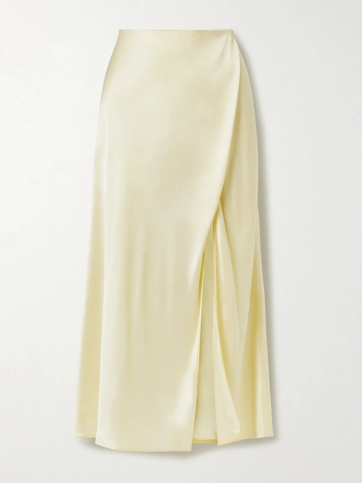 KHAITE's 'Demi' skirt is understated yet sophisticated. It's cut from lustrous satin that drapes loosely over your frame and has a front split that reveals a flash of leg with each step. Wear it with a blouse from the collection.