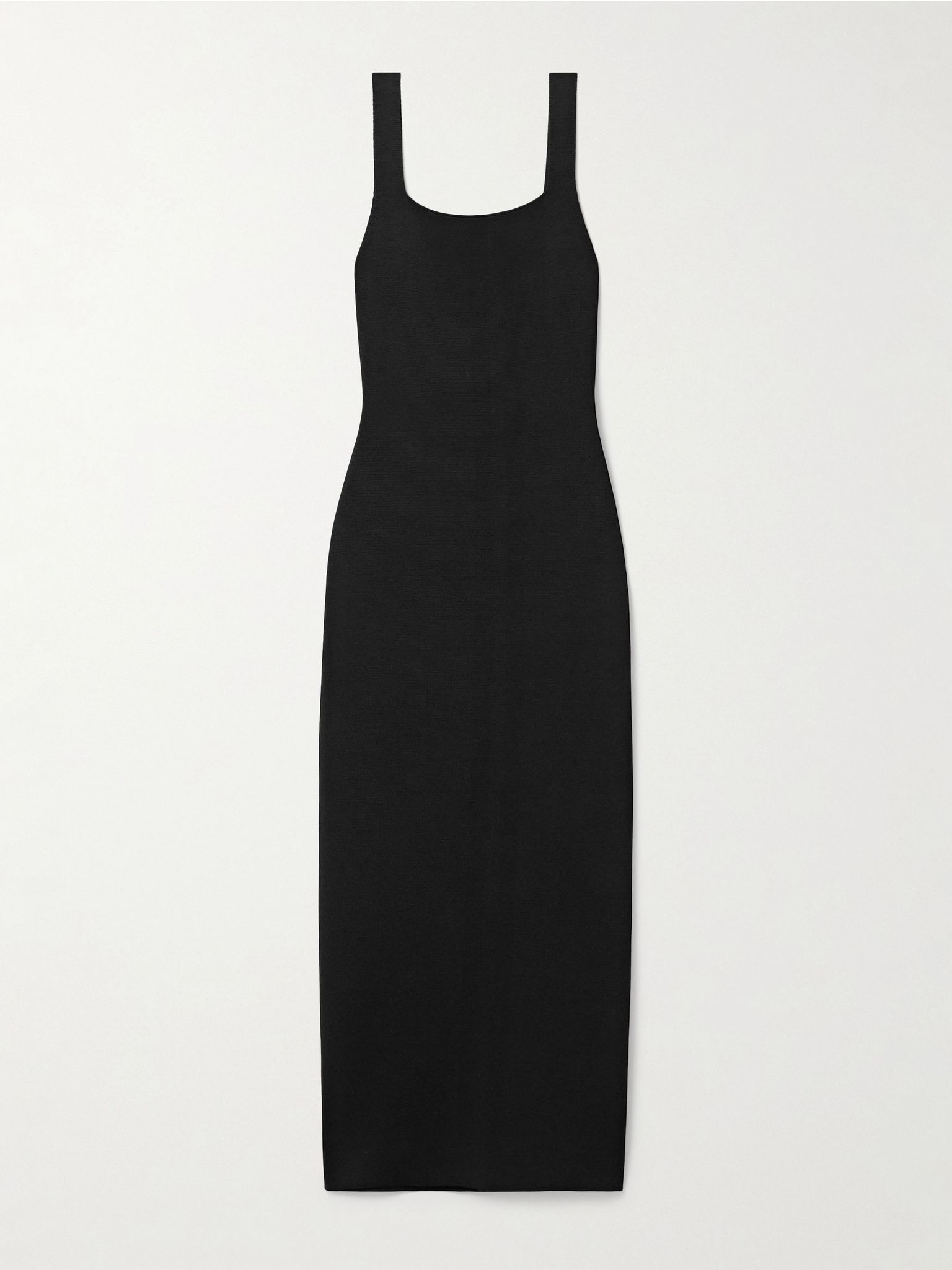 Effortless and understated, KHAITE's 'Dixi' dress is so easy to style - think strappy sandals in the summer or a jacket and boots during colder months. It's made for a slim fit from stretch-knit and has a squared neckline. Size & Fit - Fits true to size, take your normal size - Designed for a slim fit - Mid-weight knit - Model is 180cm/ 5’11” and is wearing a size Small Model measurements: - Bust: 79cm/ 31” - Waist: 61cm/ 24” - Hip: 89cm/ 35” Details & Care - Black stretch-knit - Slips on - 80% viscose, 18% polyamide, 2% elastane