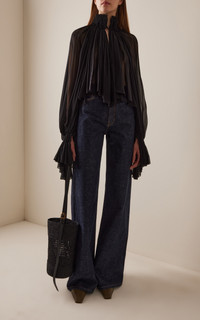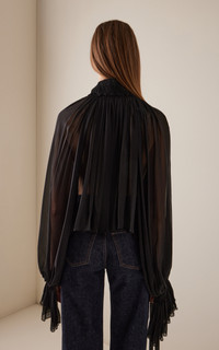 Durer Pleated Silk-Chiffon Top black