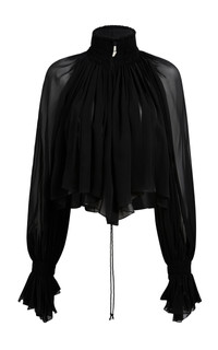PRODUCT DETAILS - Regular fit, long sleeves, high neck, uneven hem, gathering - Button fastening - Composition: 100% Silk - Color: Black - Dry clean - Made In: Italy - Resort '26