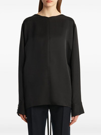 tie-back long-sleeve top Highlights - Black - Long sleeves - Tie fastening - Wide cuffs - Back opening Made in United States Composition Cupro 69%, Silk 31% Washing instructions Read Manufacturer Guidelines