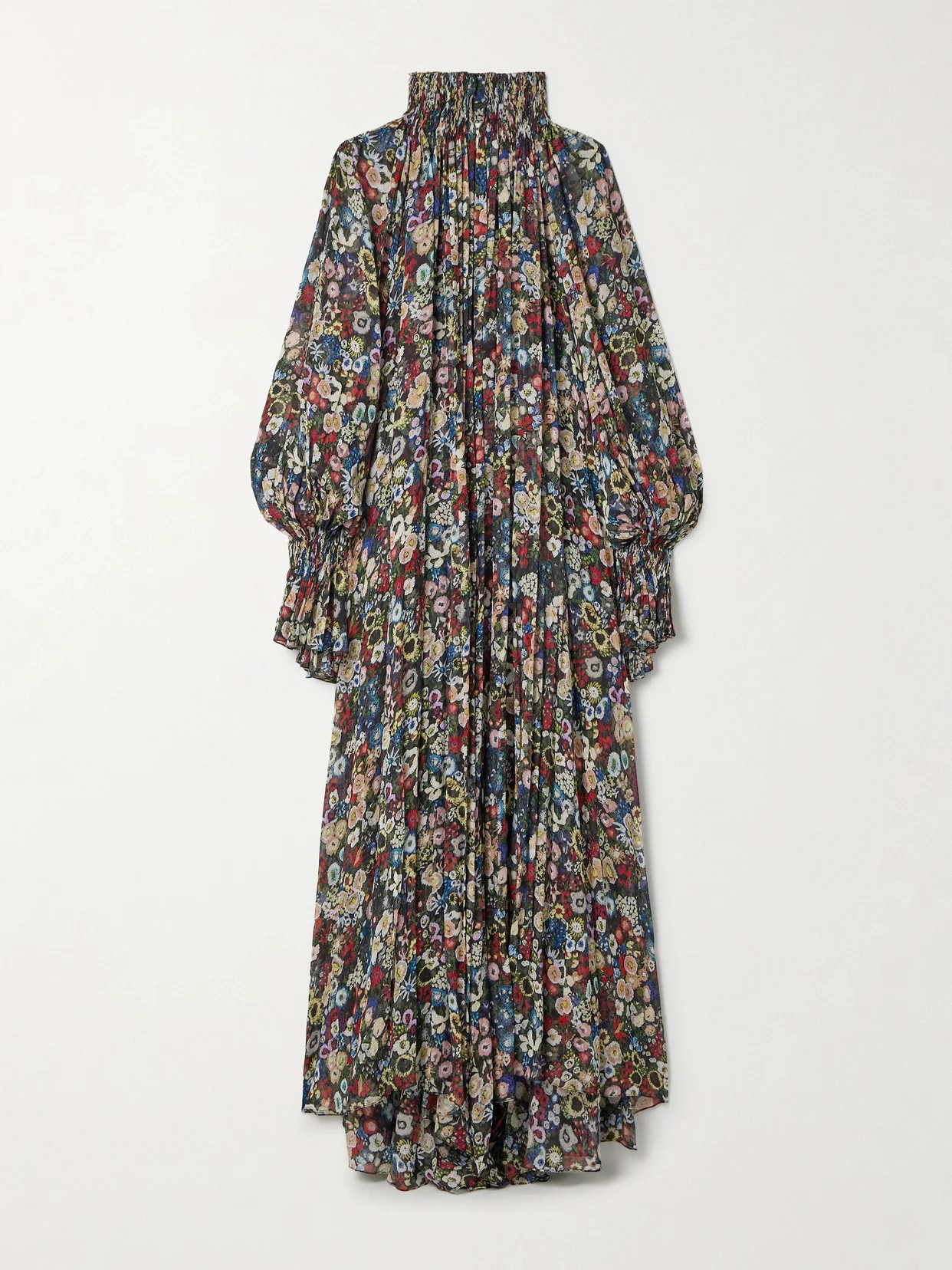 Edgar Pleated Floral-print Silk-chiffon Turtleneck Maxi Dress