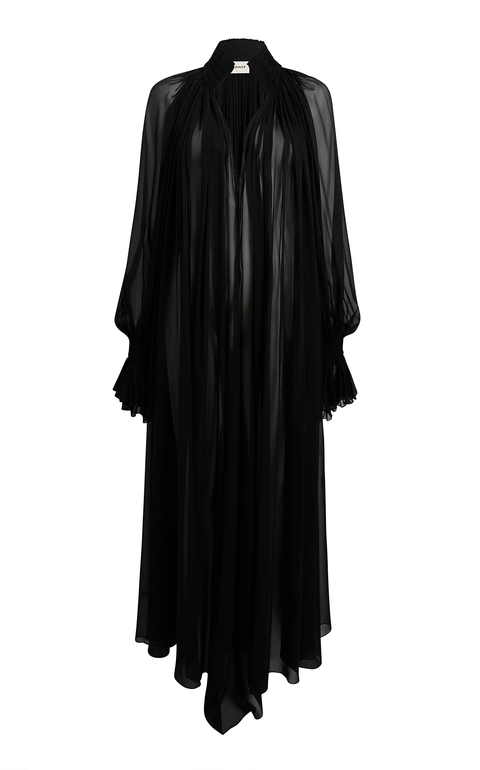 Edgar Pleated Silk-Chiffon Maxi Dress black
