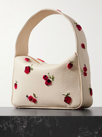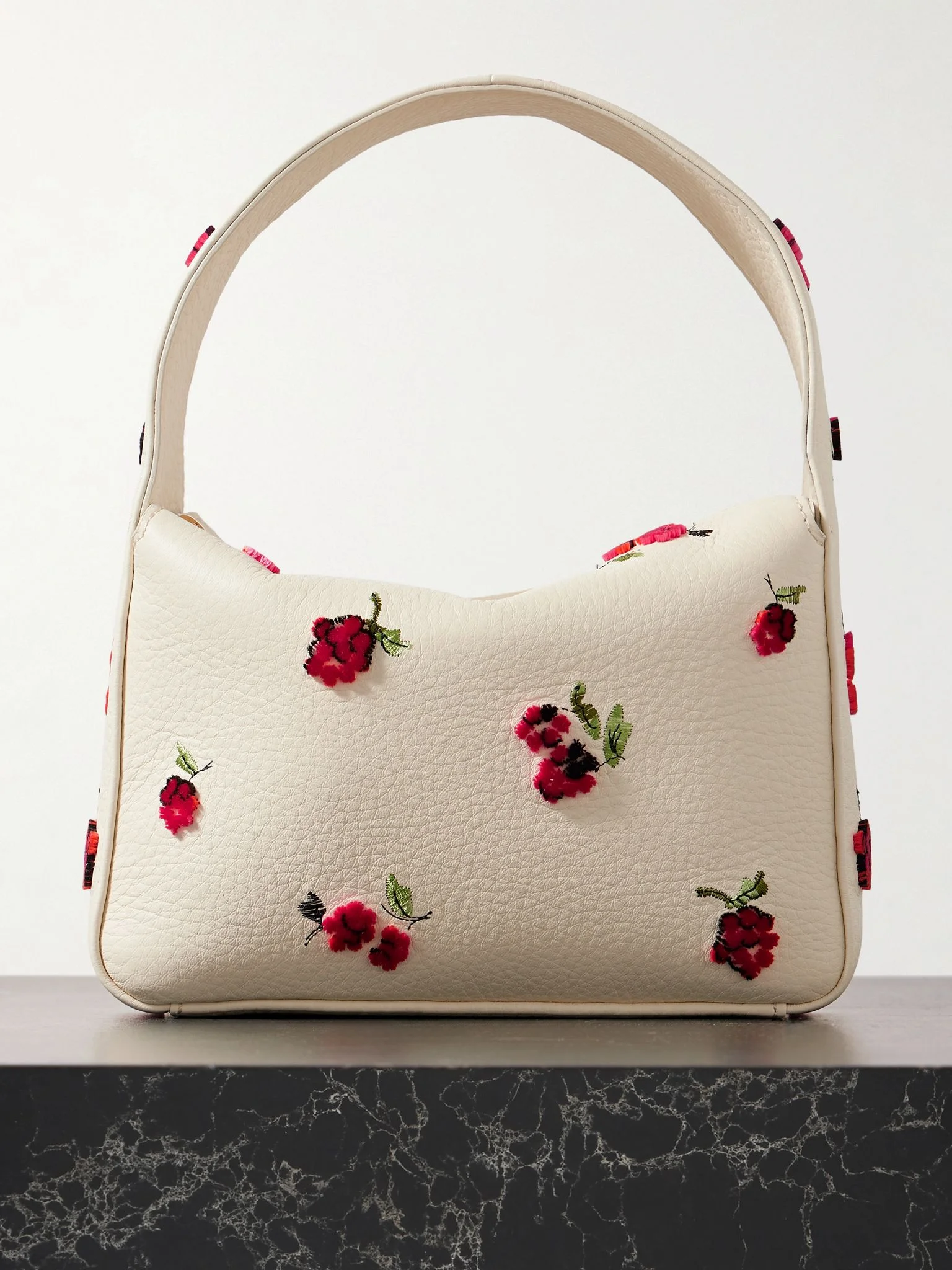 Elena small embroidered appliquéd textured-leather shoulder bag Cream