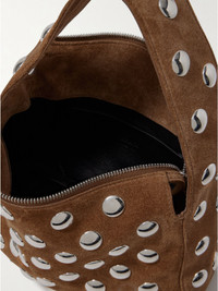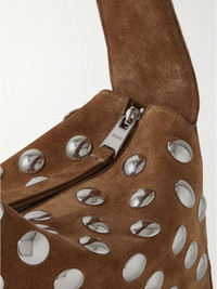 KHAITE's 'Elena' bag reminds us of classic '90s styles, updated with a bit more space inside. Made from suede and embellished with silver-tone studs including on the wide strap, it's sized to fit your phone, keys and sunglasses case and has a compartment for your most-used cards. Details & Care - Tan suede - Shoulder strap - Internal slip pocket - Fully lined - Zip fastening along top - Designer color: Mud