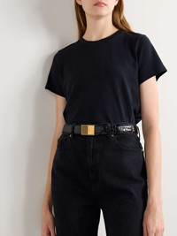 KHAITE's 'Elio' belt is perfect for threading through your favorite jeans or around the waist of relaxed blazers and dresses. Made in Italy from croc-effect patent-leather, it fastens with an intricately engraved gold-tone buckle. Size & Fit - Designed to be worn on the hips or waist - Measurements can be found in the link below Details & Care - Black croc-effect patent-leather (Calf) - Buckle fastening